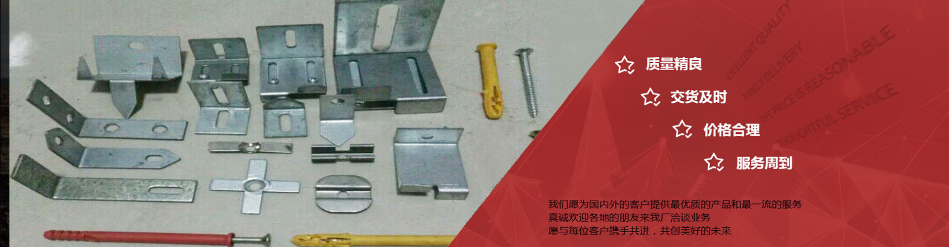 我們 坐落于中國河北省衡水市,歡迎惠顧!我們專業(yè)生產(chǎn)批發(fā):保溫釘錨固件、幕墻配件、一體板錨固件、沖壓件等產(chǎn)品。可根據(jù)用戶要求訂做各種異形件等。產(chǎn)品銷往全國各地并遠銷國際市場,深受眾多客戶的認(rèn)可和好評。我們將以完善的服務(wù)體系,為客戶提供更加優(yōu)質(zhì)的產(chǎn)品。 以科技為依托,以質(zhì)量為核心,以研發(fā)創(chuàng)新為先導(dǎo),本著以人為本,...
